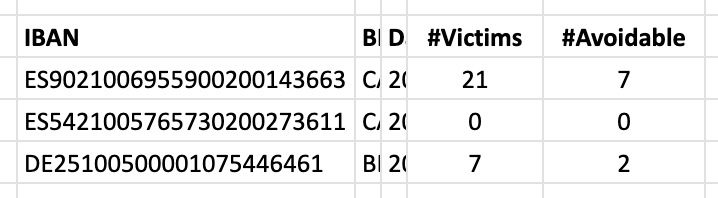 Noch interessanter ist jedoch die Frage, wie viele Fälle hätten verhindert werden können. Dazu zählt man, wie viele Opfer nach dem Zeitpunkt einer Meldung noch auf eine bereits gemeldete IBAN überwiesen haben. Auch das lässt sich mit =COUNTUNIQUEIFS() oder einer ähnlichen Funktion schnell ermitteln.